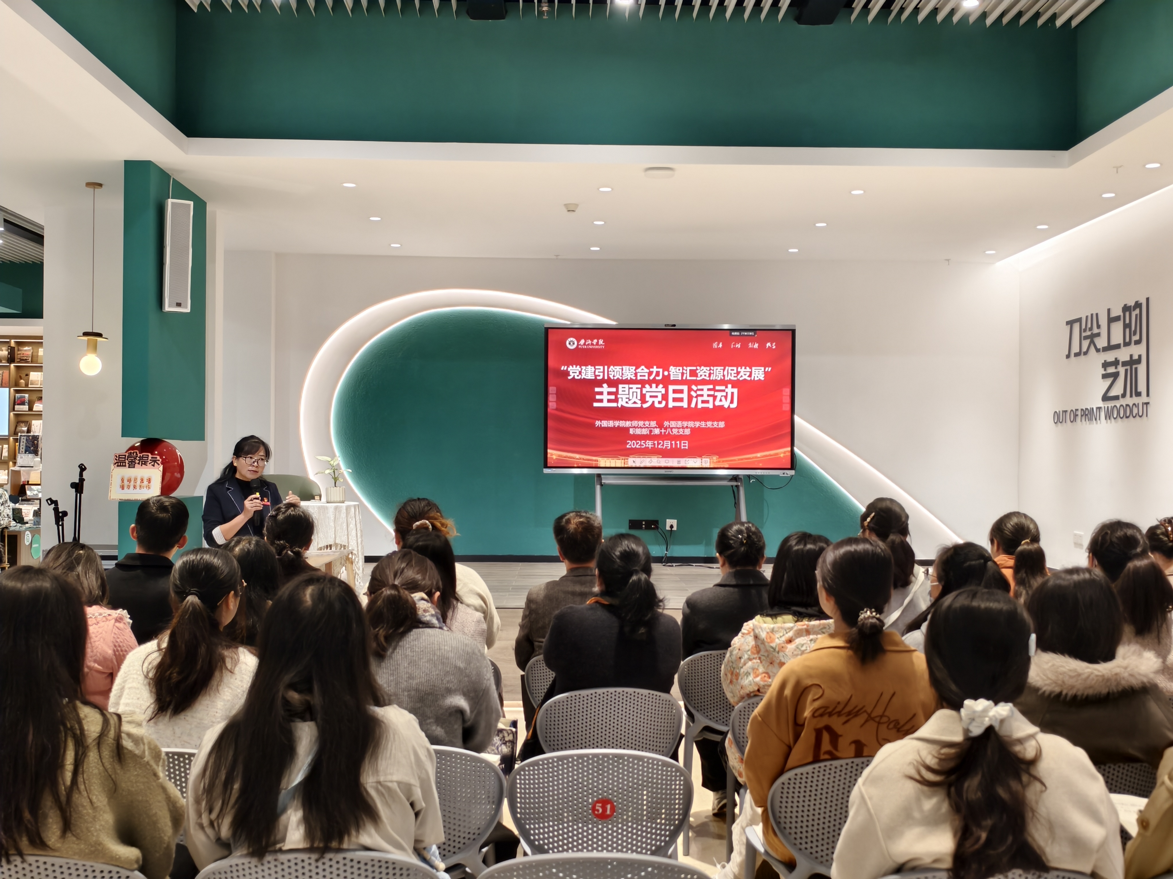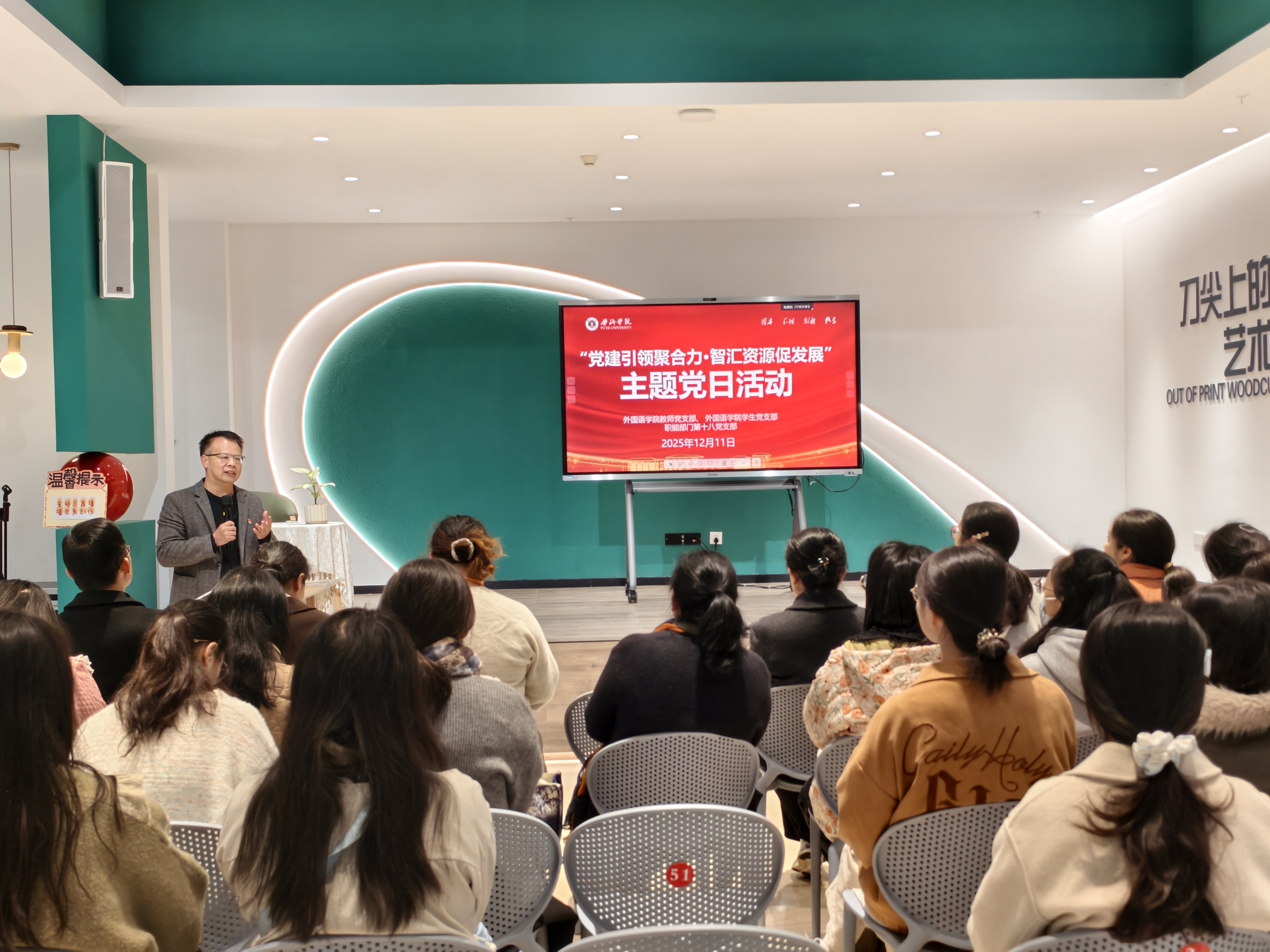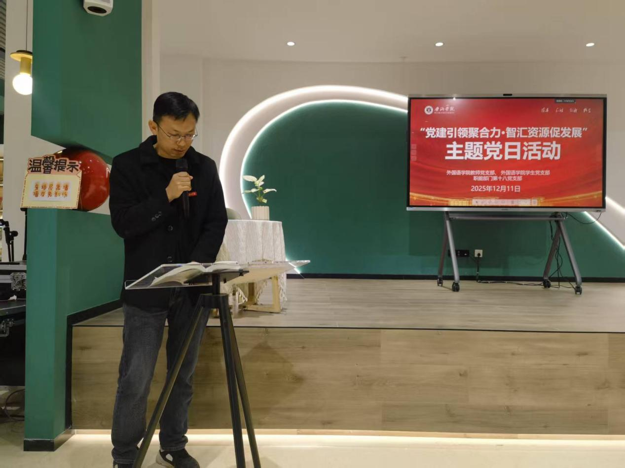为深入学习贯彻习近平新时代中国特色社会主义思想,推动党建工作与业务工作深度融合,2025年12月11日上午,职能部门第十八党支部与外国语学院教师党支部、学生党支部联合在图书馆一楼新华书店小报告厅、电子阅览室及红色体验空间,共同开展“党建引领聚合力·智汇资源促发展”主题党日活动。