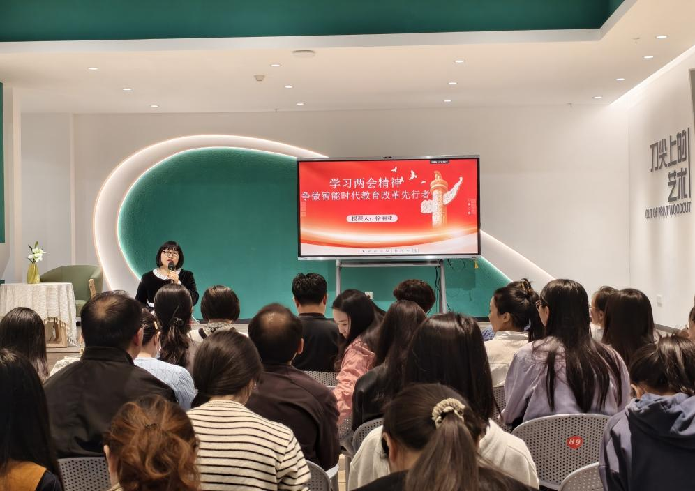 党课环节,徐丽亚同志以“学习两会精神,争做智能时代教育改革先行者”为主题,结合教育数字化转型与智能时代发展趋势,深入解读两会关于教育改革创新的部署,为思政教育守正创新、与时俱进指明方向,激励党员教师主动适应时代要求,勇做教育改革的践行者与开拓者。