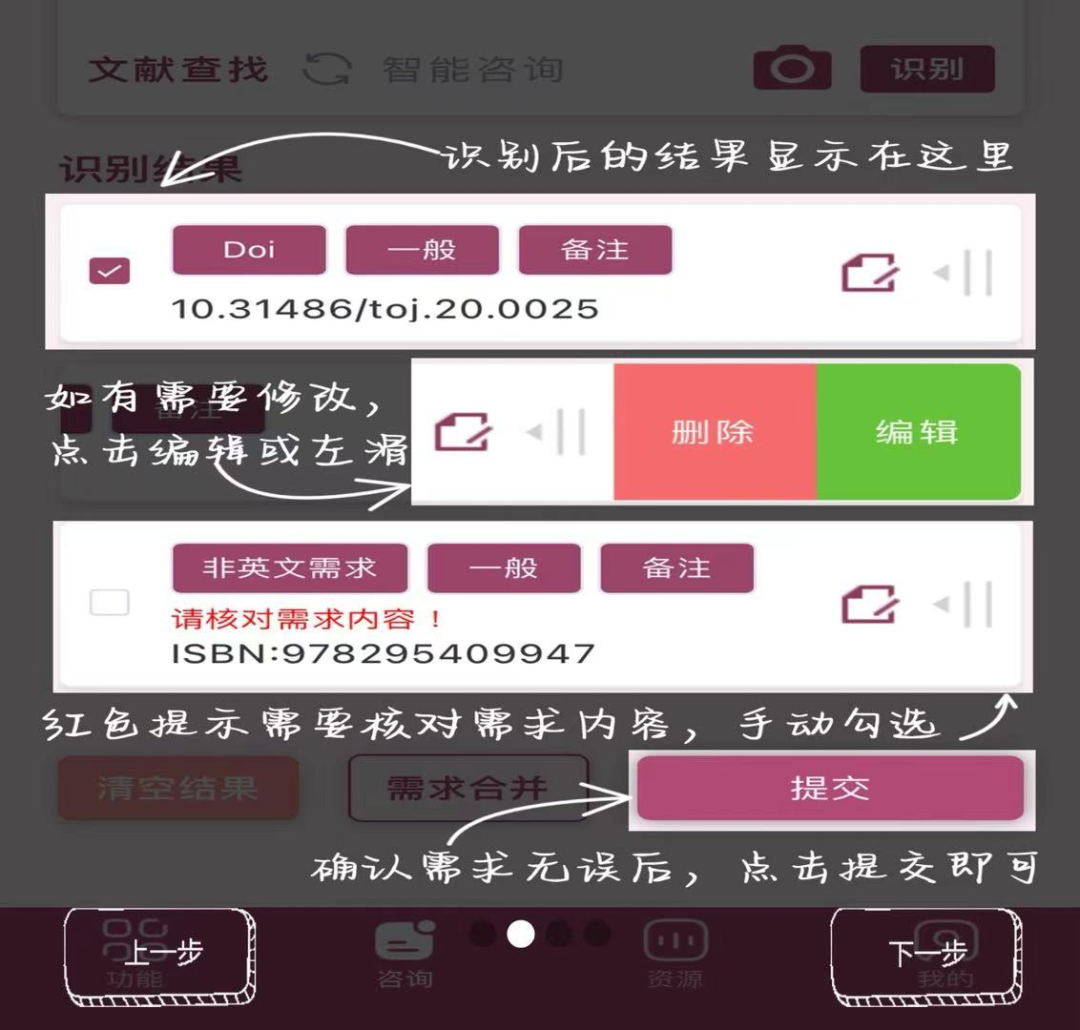 识别结果会显示在页面中:如需修改,点击“编辑”或左滑调整;