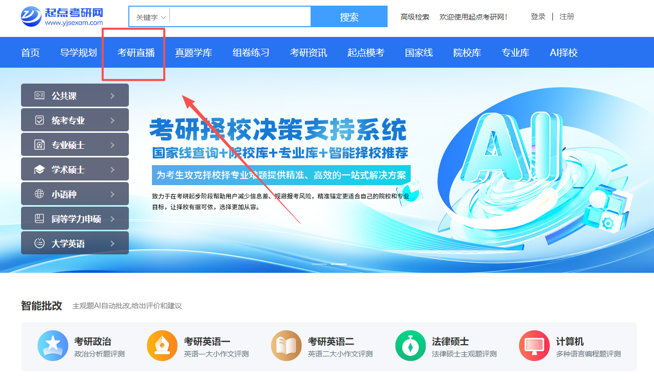 直播课结束后,可登录起点考研网观看回放