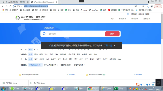 3、输入正确后就可以进入,页面是这样的,以知网为例,点击中国知网后的访问地址,就可以访问知网资源
