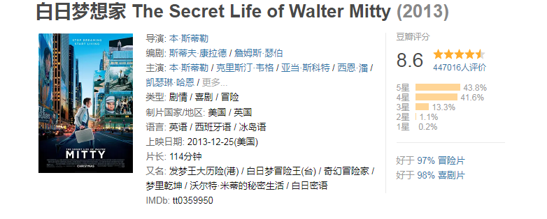 “开拓视野,冲破艰险,洞悉所有,贴近生活,寻找真爱,感受彼此。 这就是人生的目的。”——《白日梦想家 》