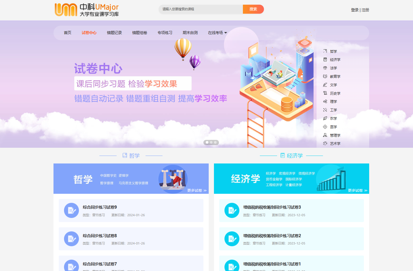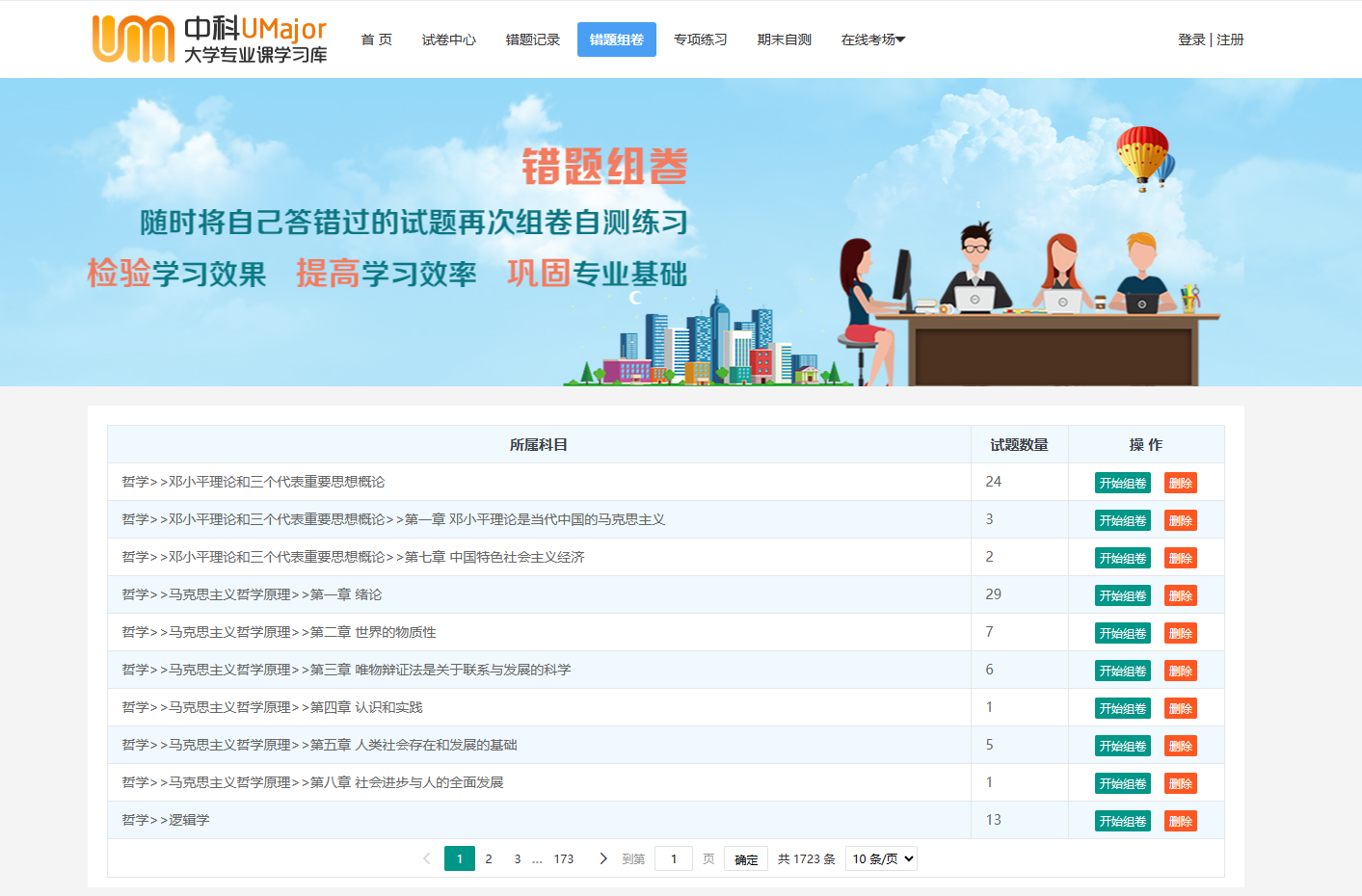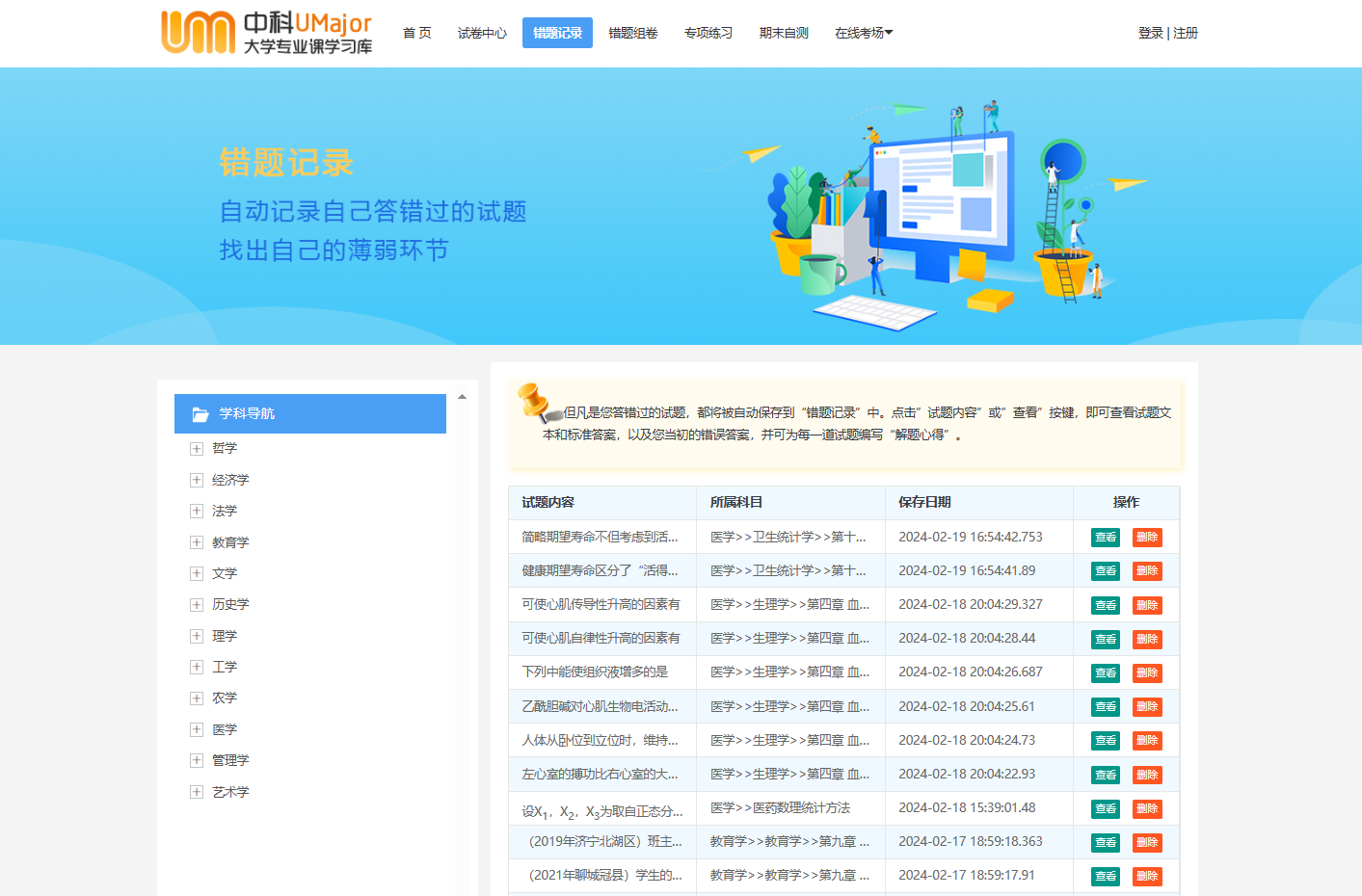 错题同样也是巩固知识的关键一环。中科UMajor专业课库的错题记录与错题组卷功能可以有效帮助同学们找到自己的薄弱环节!