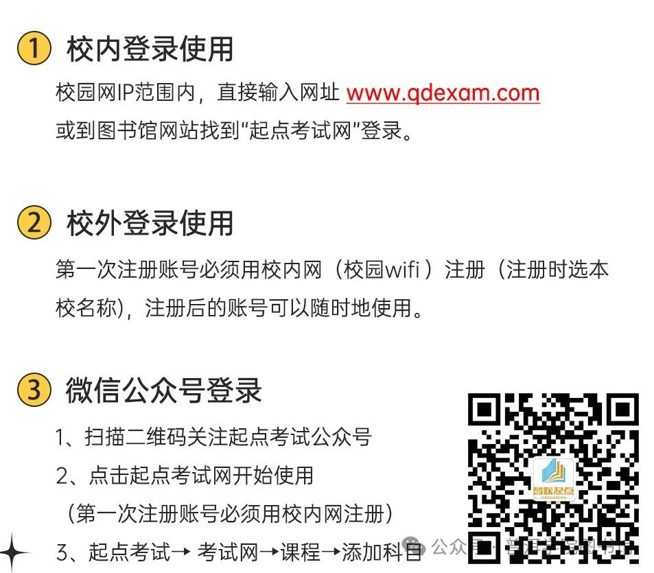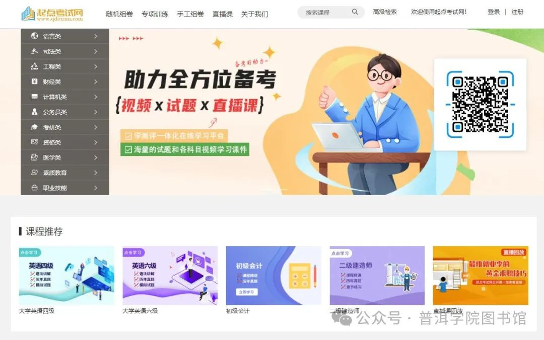 只需轻轻点击校园图书馆电子资源中的起点考试网,就能立即获得海量的试题和各科目的视频学习课件。平台为学生们提供了丰富多样的学习资源,帮助更好地备考和提高学习成绩。无论是想进行试题练习,还是需要辅助的视频学习材料,起点考试网都能满足学生们的需求。在新学期开始之际,起点考试网将成为学生们的得力助手。