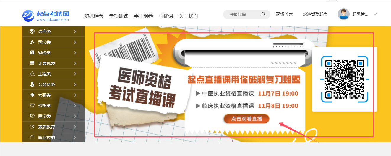 直播课结束后,可登录起点考试网或起点医考网观看回放视频