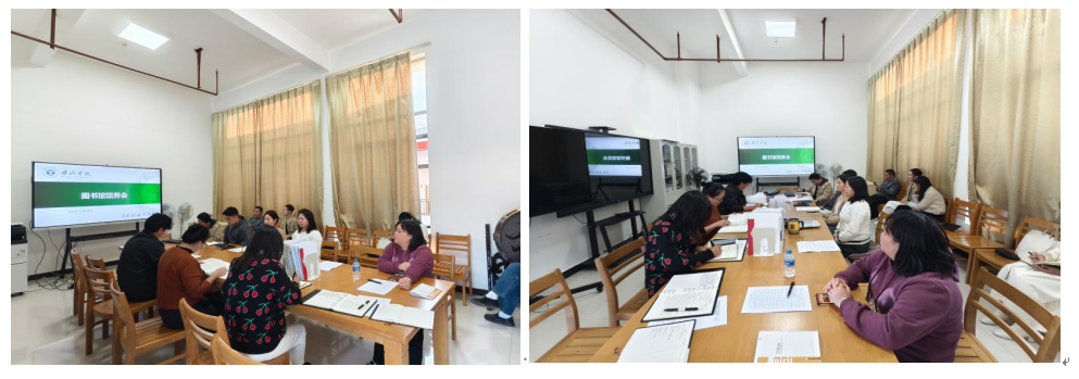 2025年11月24日下午,图书馆在四楼405研讨室召开馆务会,何乔平主持会议,图书馆全体教职工参加会议。