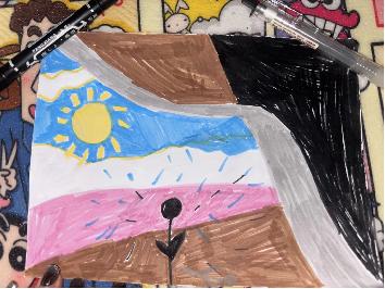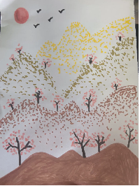 作品中的一半阳光,一半黑暗代表心理情绪变化的环境,而小黑点代表的情绪则在这样多变的环境下破土生长代表了我内心世界复杂的景象,时而阳光,时而悲伤,是情绪的真实反应。