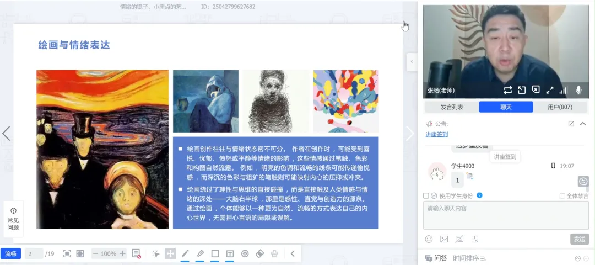 张老师将作品分为三类,一类是直接通过绘画作品表达内心的情绪,比如兴奋、低落或是振奋;第二类是用画叙述了一个故事,通过这个故事表达自己的某种观点,也是占多数的一种;第三类通过画呈现出某种意义,来抒发自己的观点。结合张老师丰富的实践案例,开展了一堂生动的情绪主题讲座。