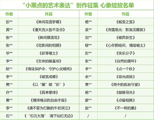 “小黑点的艺术表达”部分作品展示及心象绽放名单
