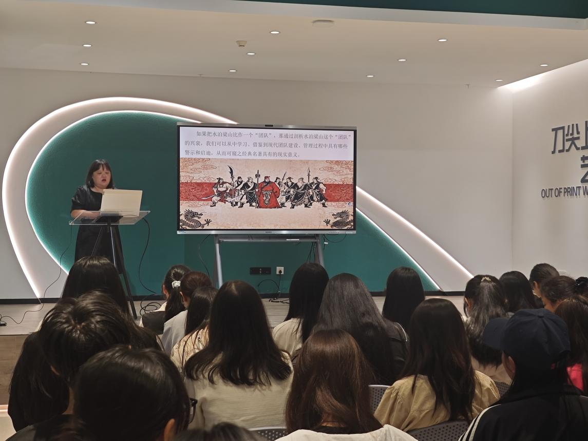 本次讲座以 “《水浒传》王伦故事看团队管理智慧” 为核心,为现场师生带来一场跨越时空的文学与管理思维碰撞。 讲座聚焦《水浒传》中王伦这一经典人物,通过 “经典解码 — 现实联结 — 实用指南” 三层逻辑展开。主讲人深入剖析王伦的 “狭隘格局” 与团队信任危机,揭示出封闭排外、权力制衡失衡、忽视人才价值等团队建设致命伤;随后结合现代职场场景,探讨如何从 “制衡之术” 转向 “共赢生态”,帮助听众规避 “王伦式管理” 陷阱;最终通过解读名著中的管理哲学,为师生解锁团队协作、人才培养、领导力提升的实用密码。 “‘读经典,用经典’不是口号,而是解决实际问题的破局之道。”