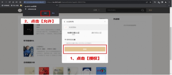 点击【授权】,点击【允许】获取您的位置,即可开启阅读之旅~